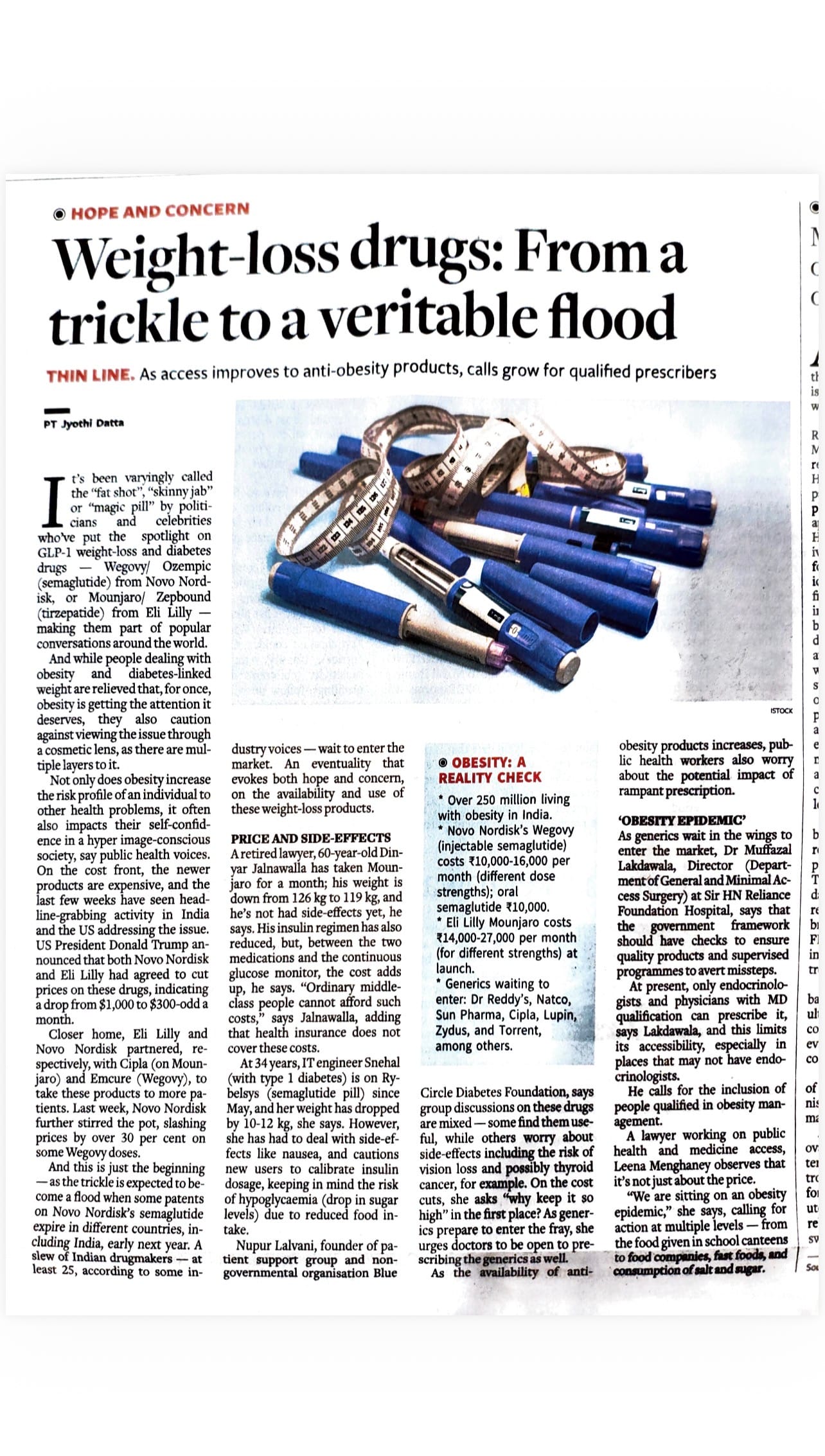 As anti-obesity/diabetes drugs flood the market, concerns grow around the access, affordability & side effects. The Hindu BusinessLine quotes Dinyar, Snehal & Nupur, voices from Blue Circle Diabetes Foundation on why community-driven conversations on obesity and diabetes matter now more than ever. Read the article online here.